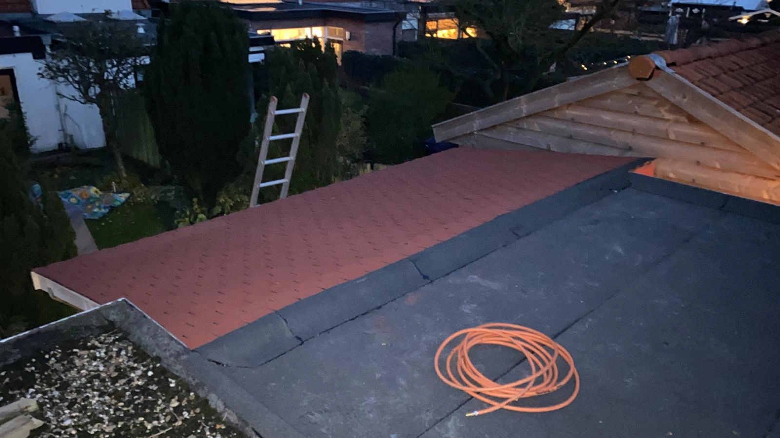 Voor een particuliere opdrachtgever in Almere kwam bij ons de vraag om een aanbouw te bedekken met dakshingles.